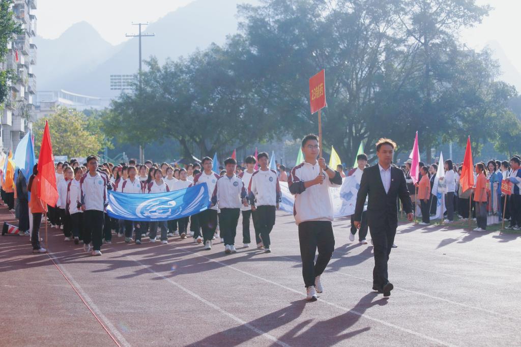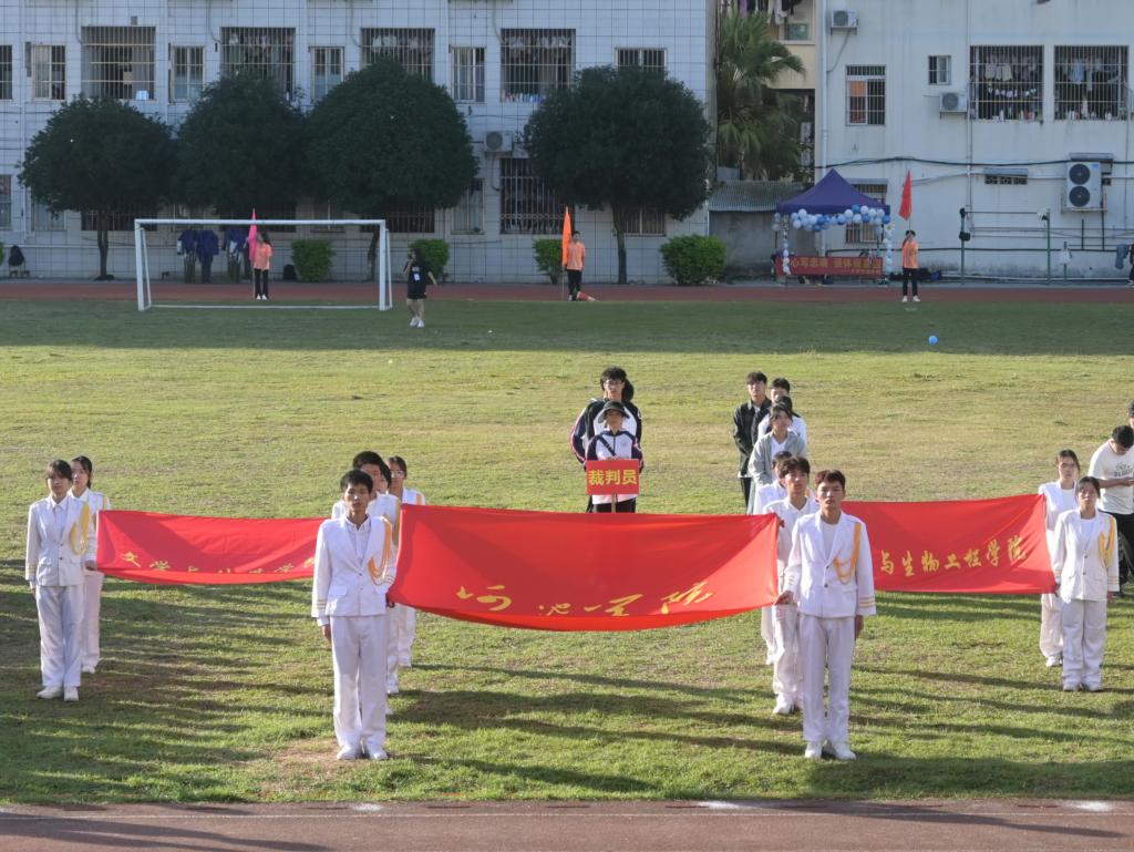 随着进行曲的奏响,运动会开幕式正式开始。学院旗队迈着铿锵有力的步伐,走过主席台。裁判员及各班级方队严整有序入场,以独具特色的风采展现出青春的活力。
