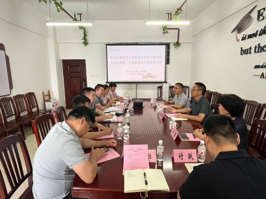 为强化校际合作与产学研融合,6月29日,西华大学食品与生物工程学院关统伟教授团队到我校开展调研交流活动,学校党委常委、副校长覃拥灵热情接待了关统伟教授一行。