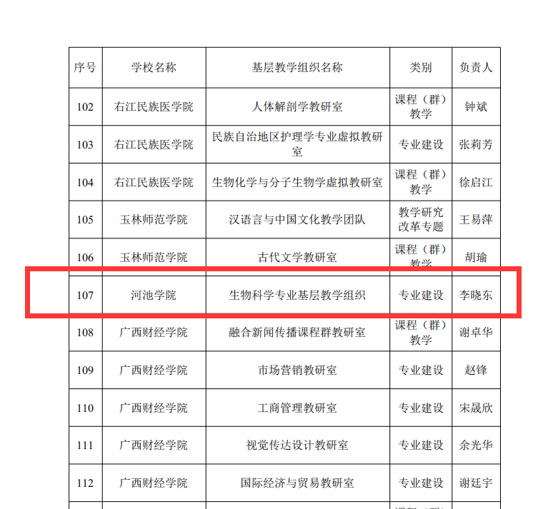 【喜讯】我校生物科学专业基层教学组织获评为2024年自治区级普通本科高校基层教学组织