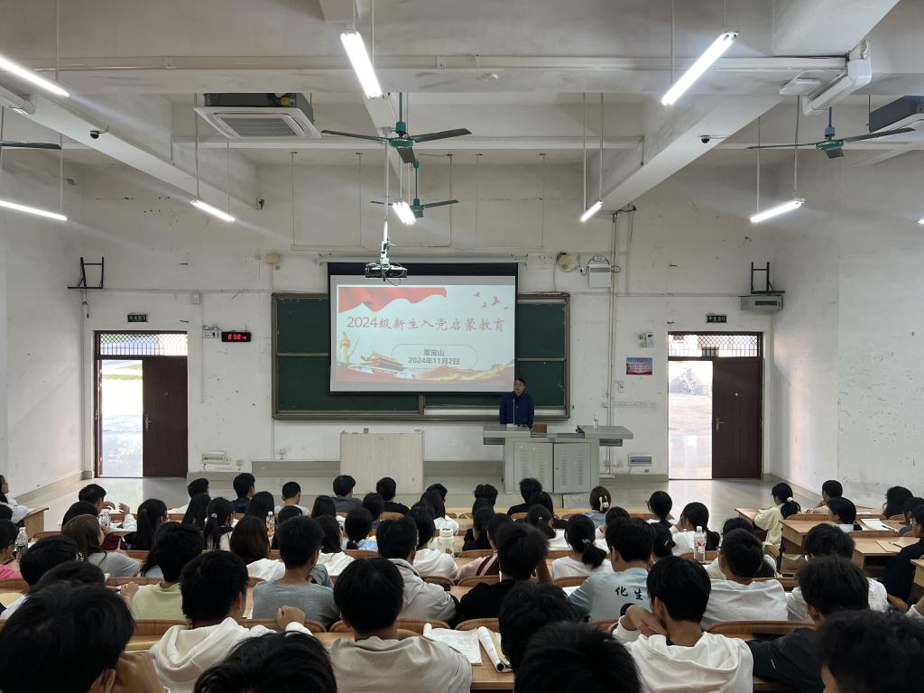 11月2日,金沙9001cc 以诚为本在东区弘毅楼1-105室开展2024级新生入党启蒙教育,2024级全体同学参加,金沙官网党委书记覃宝山主讲。