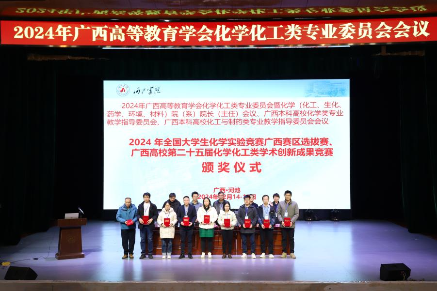 12月14日,2024年广西高等教育学会化学化工类专业委员会暨化学(化工、生化、药学、环境、材料)院(系)院长(主任)会议在我校举办。广西高等教育学会化学化工类专业委员会主任委员、广西师范大学梁宏教授,学校副校长贺卫国教授,广西高等教育学会化学化工类专业委员会常务副主任委员、广西大学童张法教授,广西高等教育学会化学化工类专业委员会秘书长、广西大学化学化工学院党委书记、院长周立亚教授,以及来自区内的广西26所高校化学(化工、生化、药学、环境、材料)院(系)负责人、教师代表及支持单位120余名代表参会。
