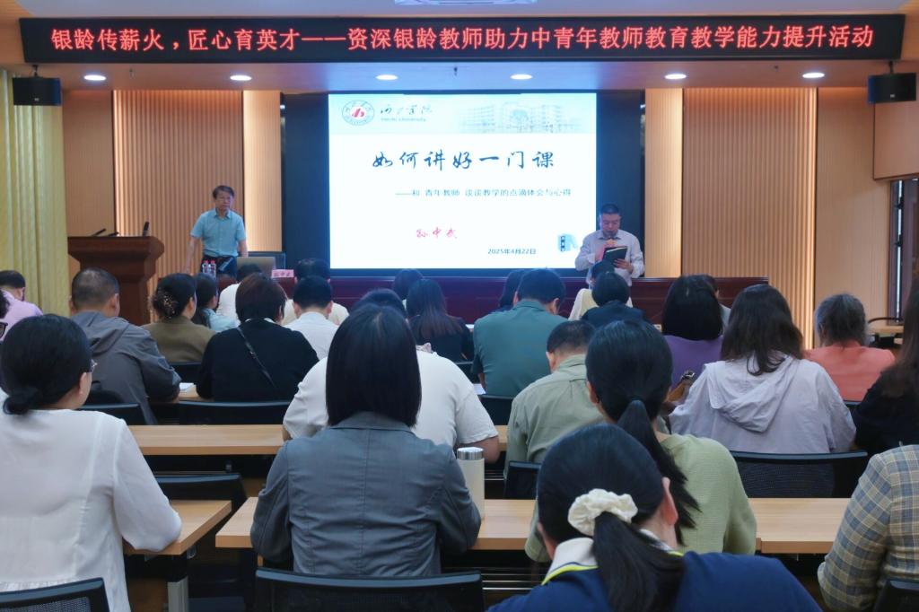 4月23日,金沙9001cc 以诚为本在格致楼101室开展“银龄传薪火,匠心育英才——资深银龄教师助力中青年教师教育教学能力提升”活动。活动由金沙9001cc 以诚为本副院长陆俊宇主持,全院教职工及部分学生参加活动。