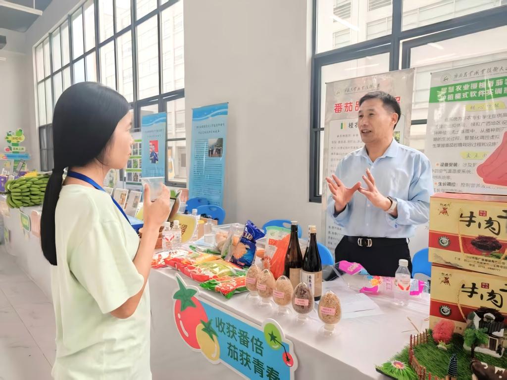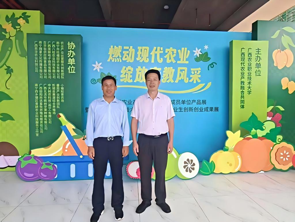 6月25日至27日,广西现代农业产教融合共同体成员单位在广西农业职业技术大学举办了“2025年广西现代农业产教融合共同体成员单位产品展”活动,金沙9001cc 以诚为本作为广西现代农业产教融合共同体成员副理事单位,由金沙9001cc 以诚为本农学责任教授李楠带队前往参加。此次会展,展会集中呈现了22家参展单位的农业产教融合成果,共吸引1.3万余人次到场观展。