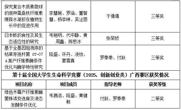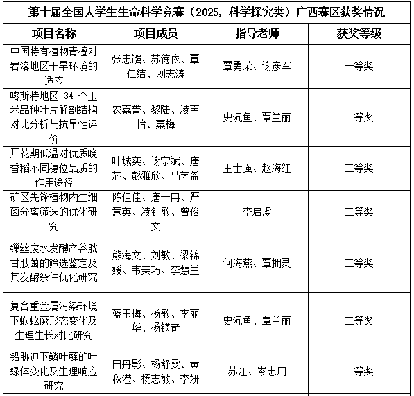 此次获奖体现了我校在生命科学领域的教学成果和学生创新能力。我校将继续深化以赛促教、以赛促学的培养模式,为创新型人才成长提供坚实平台。(作者:蓝玉梅 拍摄:蓝玉梅 校对:覃勇荣 审核:覃宝山)