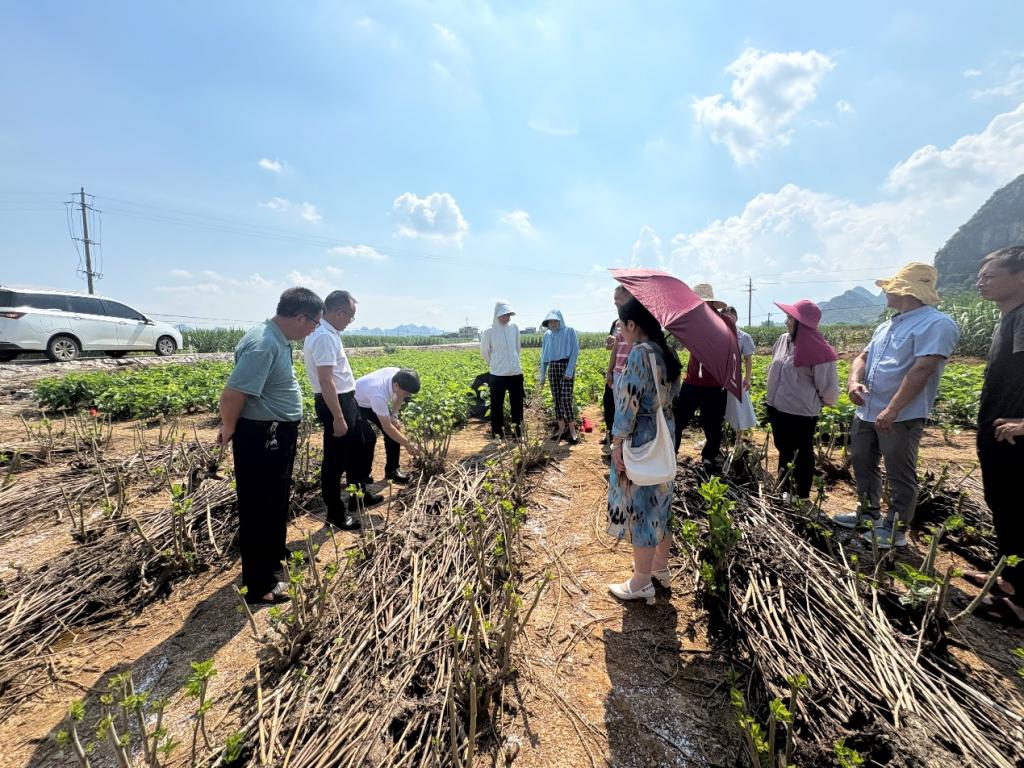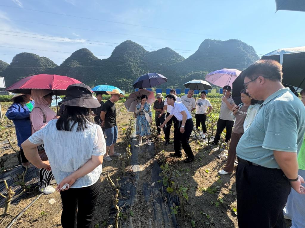 夏伐是成林桑园管理中极为关键的一环,它不仅关乎桑叶的产量和质量,还直接影响到蚕茧的产出效益。夏伐后的桑园管理更是至关重要,一系列细致入微的措施将为桑树的后续生长奠定坚实基础。下午在宜州区洛东镇王格村和德胜镇榄树村冒着高温进行了桑园现场培训,“桑树夏伐后,需全面清园,除草松土,及时做好排水防涝,合理施肥,加强病虫害防控……”赵卫国研究员在田间地头,详细讲解夏伐后桑园管理的相关技术和知识。讲解过程中,还有农户积极反馈自己在过往种植养殖中遇到的难题,专家现场一一解答,并给出解决方案、现场示范指导,确保技术能够切实落地见效。随后,在广西国色天蚕发展有限公司标准桑园示范基地发现桑树死亡现象,现场确定死亡病因为紫纹羽病,并提出了具体技术防治措施。