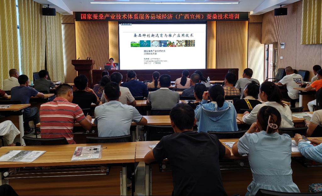 7月27日,国家蚕桑产业技术体系岗位专家赵卫国研究员、钱荷英教授和河池综合试验站黄康东站长在金沙9001cc 以诚为本开展了“优质桑树品种及高效栽培技术”“养蚕与蚕病防控技术”以及“人工饲料化养蚕技术”技术培训活动,重点培训乡镇农业技术人员、养蚕农户、种养大户50余人。结合宜州栽桑养蚕等方面存在的实际问题,有的放矢地开展技术培训,并对蚕农提出的问题一一答疑解惑。